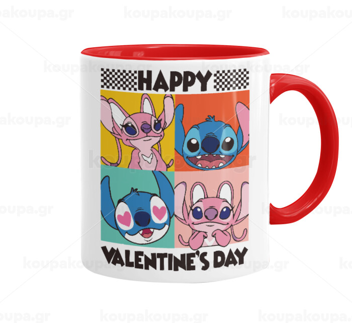 Lilo & Stitch Happy valentines day, Κούπα χρωματιστή κόκκινη, κεραμική, 330ml