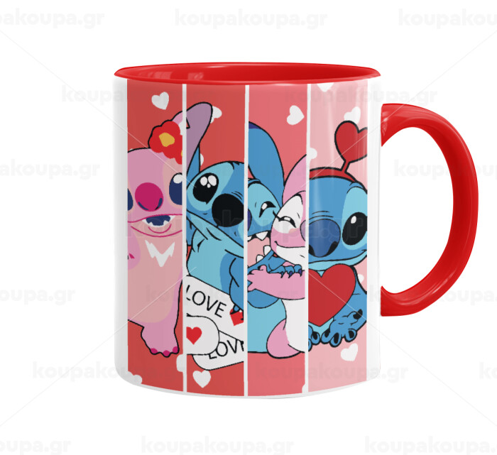 Lilo & Stitch Love, Κούπα χρωματιστή κόκκινη, κεραμική, 330ml