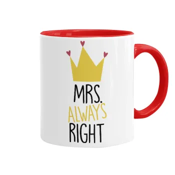 Mrs "Always" right, Κούπα χρωματιστή κόκκινη, κεραμική, 330ml