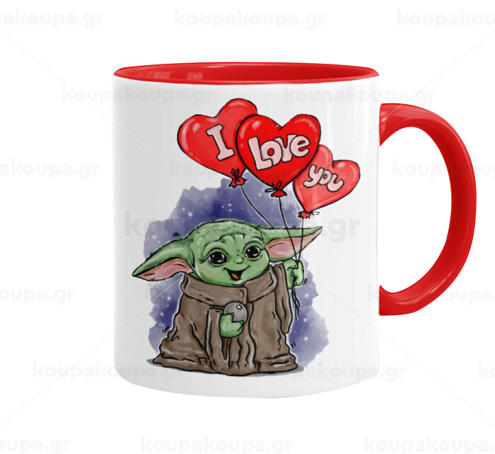 Yoda, i love you, Κούπα χρωματιστή κόκκινη, κεραμική, 330ml
