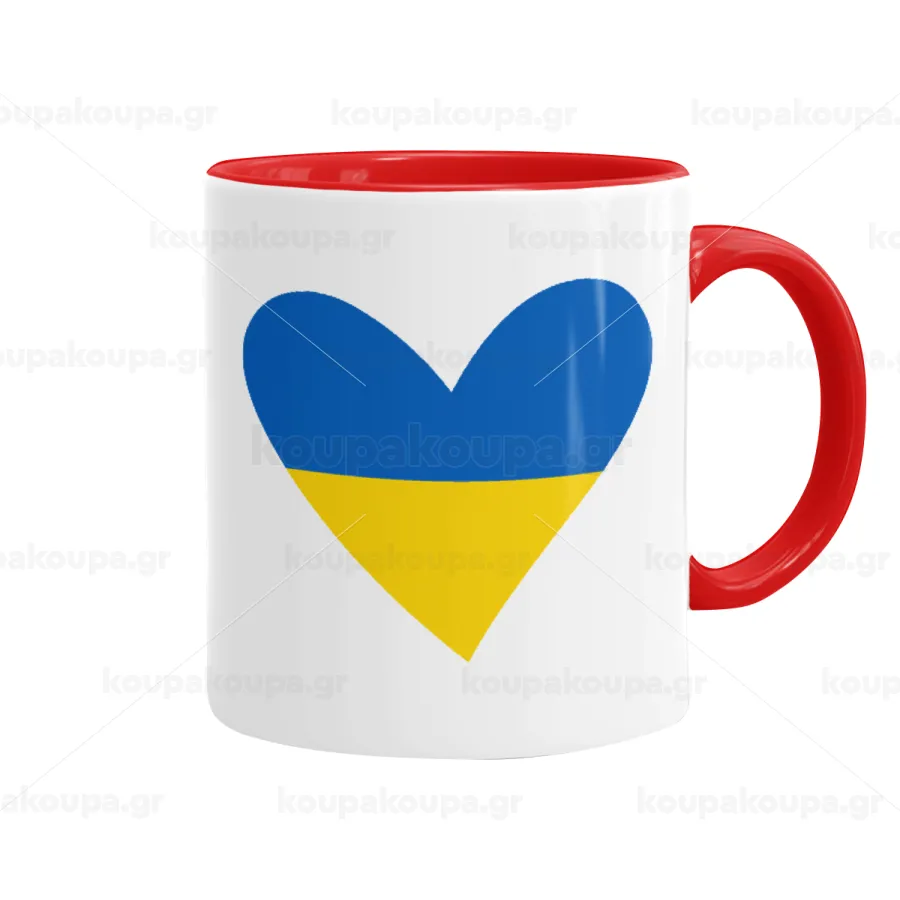 UKRAINE heart, Κούπα χρωματιστή κόκκινη, κεραμική, 330ml