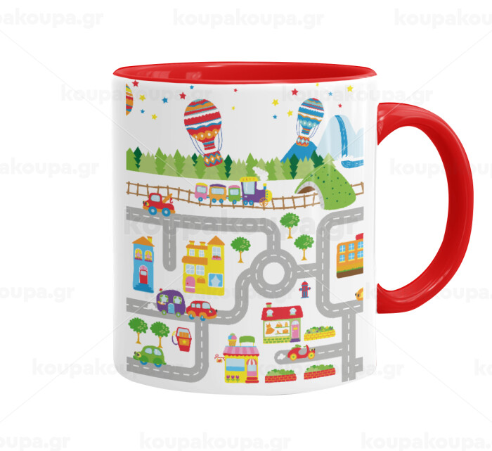 City road track maps, Κούπα χρωματιστή κόκκινη, κεραμική, 330ml
