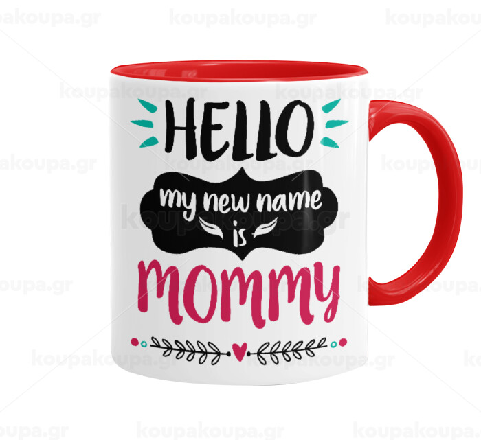 Hello, my new name is Mommy, Κούπα χρωματιστή κόκκινη, κεραμική, 330ml