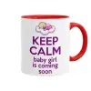 KEEP CALM baby girl is coming soon!!!, Κούπα χρωματιστή κόκκινη, κεραμική, 330ml