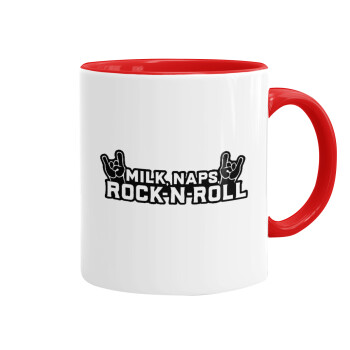 Milk, Naps, Rock N Roll, Κούπα χρωματιστή κόκκινη, κεραμική, 330ml