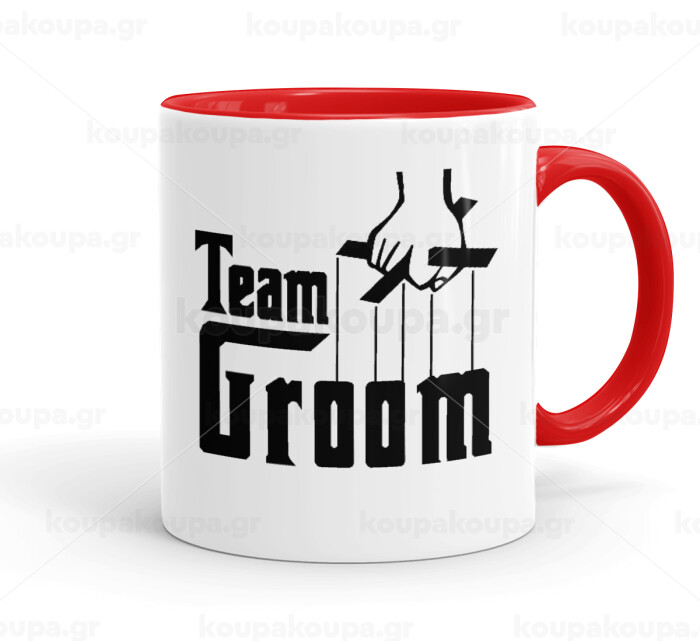 Team Groom, Κούπα χρωματιστή κόκκινη, κεραμική, 330ml