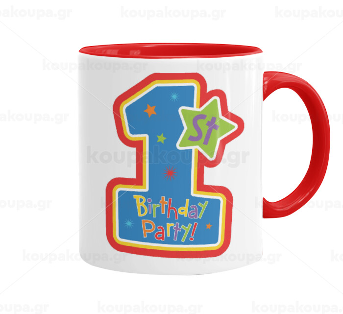 Happy 1st Birthday, Κούπα χρωματιστή κόκκινη, κεραμική, 330ml