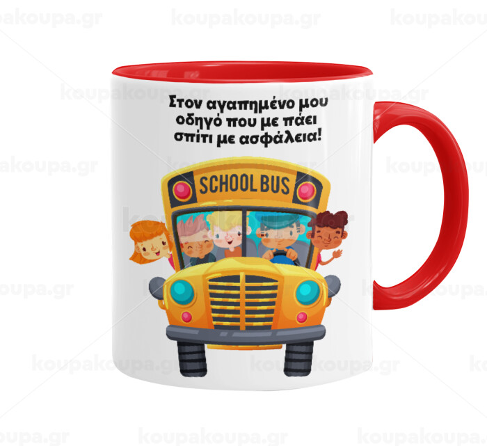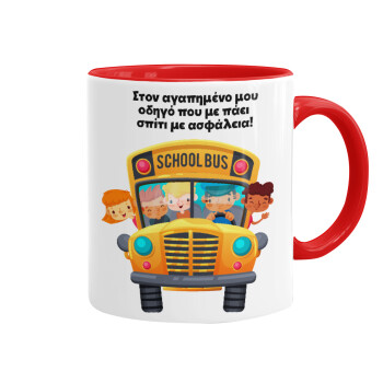 Στον αγαπημένο μου οδηγό που με πάει σπίτι με ασφάλεια!, Κούπα χρωματιστή κόκκινη, κεραμική, 330ml