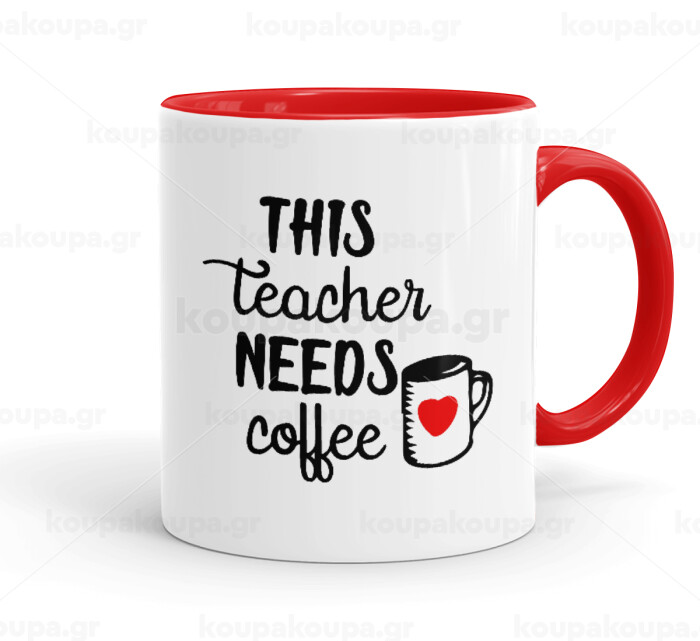 Τhis teacher needs coffee, Κούπα χρωματιστή κόκκινη, κεραμική, 330ml