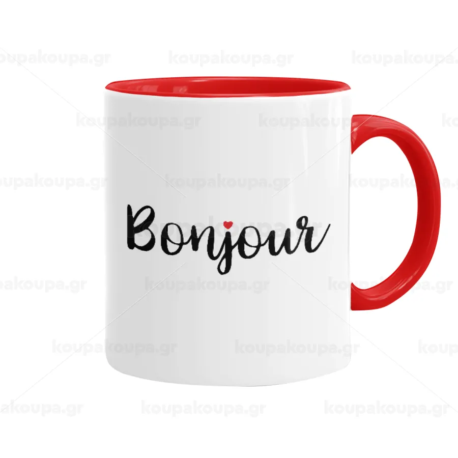 Bonjour, Κούπα χρωματιστή κόκκινη, κεραμική, 330ml