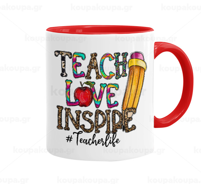 Teach, Love, Inspire, Κούπα χρωματιστή κόκκινη, κεραμική, 330ml