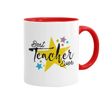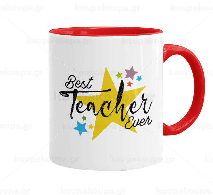 Teacher super star!!!, Κούπα χρωματιστή κόκκινη, κεραμική, 330ml