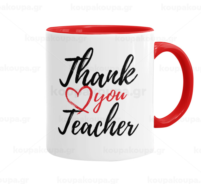 Thank you teacher, Κούπα χρωματιστή κόκκινη, κεραμική, 330ml