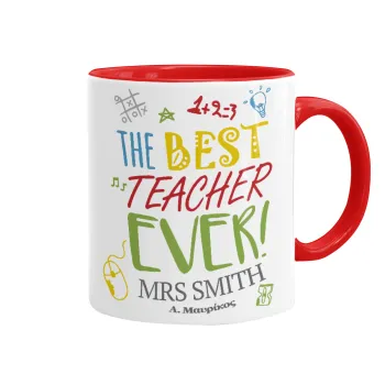 The best teacher ever!, Κούπα χρωματιστή κόκκινη, κεραμική, 330ml