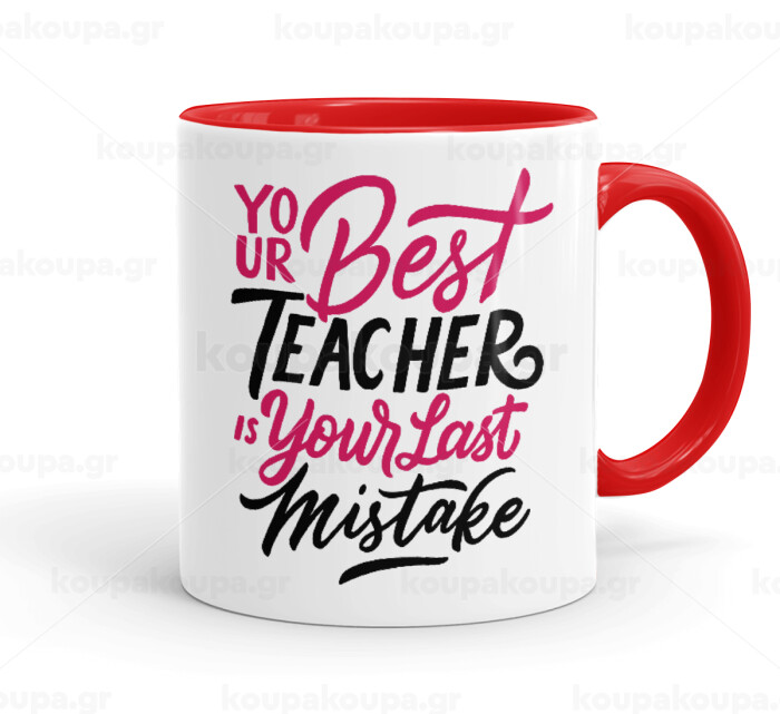 Typography quotes your best teacher is your last mistake, Κούπα χρωματιστή κόκκινη, κεραμική, 330ml