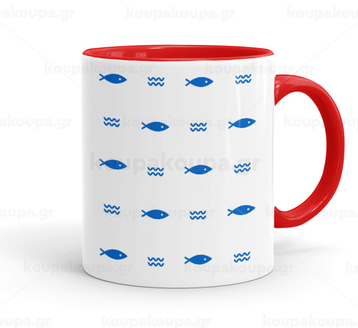 Ψαράκια, Κούπα χρωματιστή κόκκινη, κεραμική, 330ml