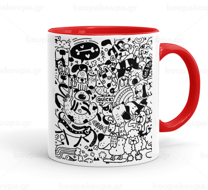 Σκυλάκια, Κούπα χρωματιστή κόκκινη, κεραμική, 330ml