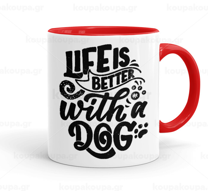 Life is better with a DOG, Κούπα χρωματιστή κόκκινη, κεραμική, 330ml