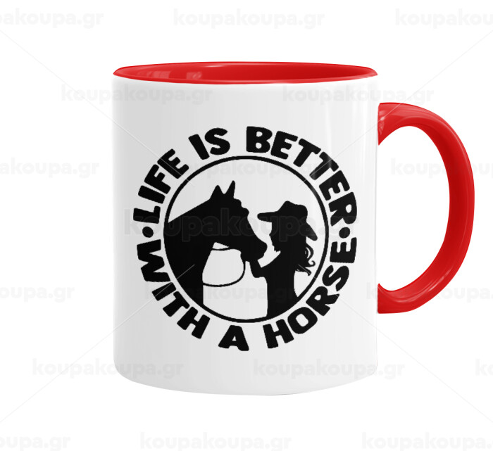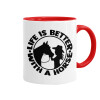 Life is Better with a Horse, Κούπα χρωματιστή κόκκινη, κεραμική, 330ml