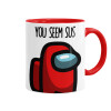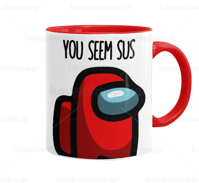 Among US, you seem sus, Κούπα χρωματιστή κόκκινη, κεραμική, 330ml