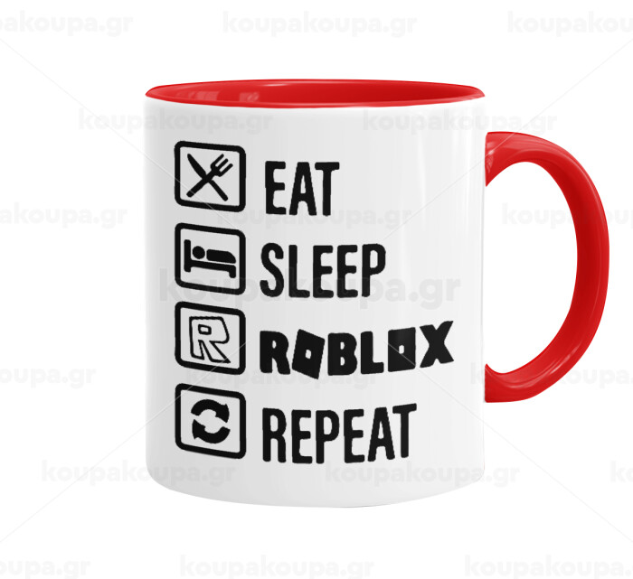 Eat, Sleep, Roblox, Repeat, Κούπα χρωματιστή κόκκινη, κεραμική, 330ml