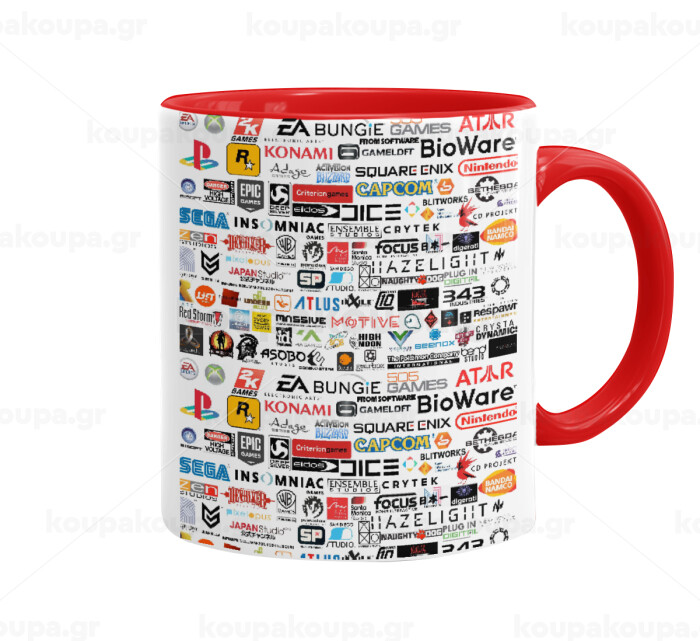 Video Game Studio Logos, Κούπα χρωματιστή κόκκινη, κεραμική, 330ml