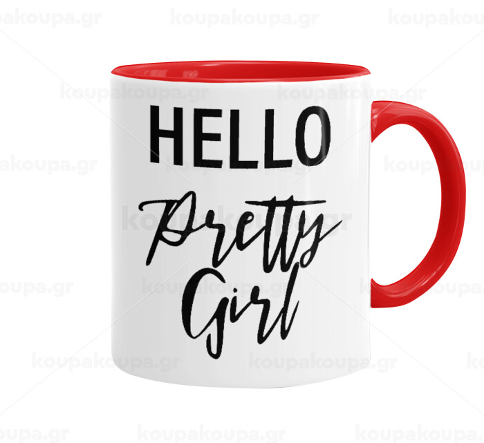 Hello pretty girl, Κούπα χρωματιστή κόκκινη, κεραμική, 330ml
