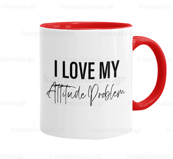 I love my attitude problem, Κούπα χρωματιστή κόκκινη, κεραμική, 330ml