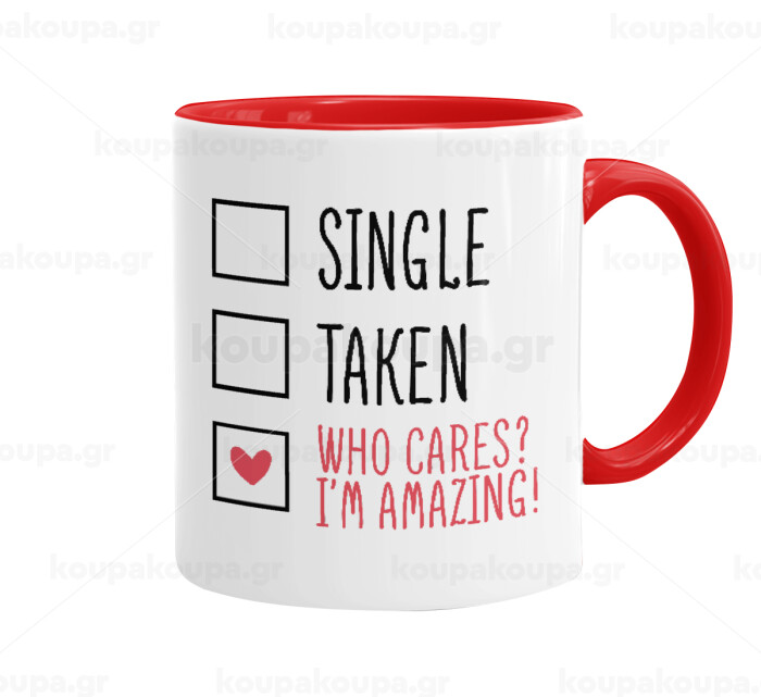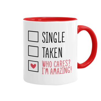 Single, Taken, Who cares i'm amazing, Κούπα χρωματιστή κόκκινη, κεραμική, 330ml