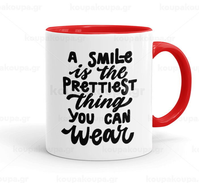 A smile is the prettiest thing you can wear, Κούπα χρωματιστή κόκκινη, κεραμική, 330ml