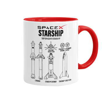 Space X, Κούπα χρωματιστή κόκκινη, κεραμική, 330ml