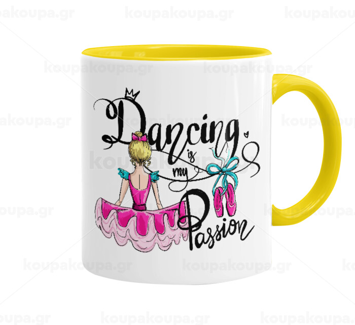 Dancing is my Passion, Κούπα χρωματιστή κίτρινη, κεραμική, 330ml