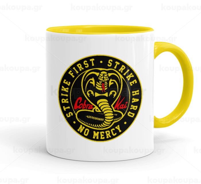 cobra kai strike first dojo, Κούπα χρωματιστή κίτρινη, κεραμική, 330ml
