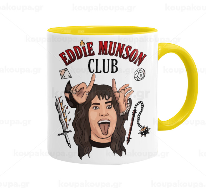Eddie Munson, Hellfire CLub, Stranger Things, Κούπα χρωματιστή κίτρινη, κεραμική, 330ml