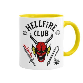 Hellfire CLub, Stranger Things, Κούπα χρωματιστή κίτρινη, κεραμική, 330ml