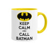 KEEP CALM & Call BATMAN, Κούπα χρωματιστή κίτρινη, κεραμική, 330ml