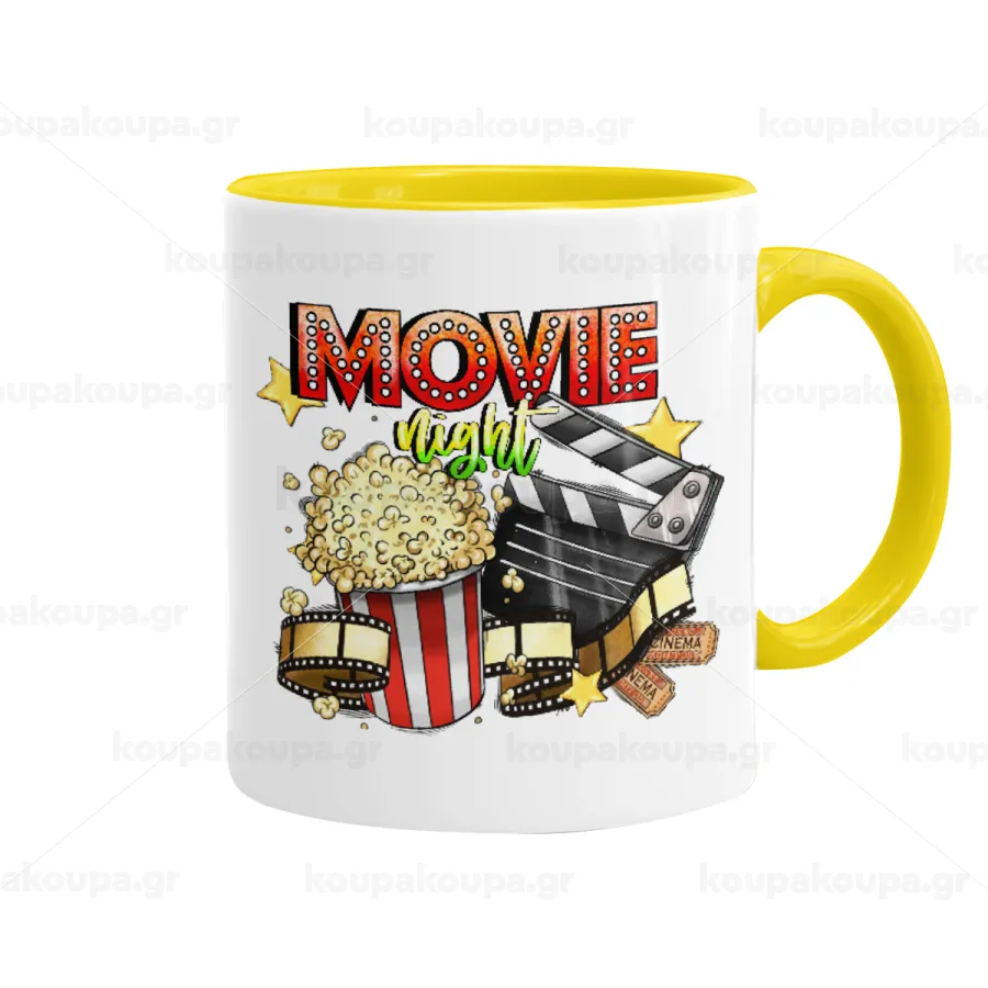 Movie night, Κούπα χρωματιστή κίτρινη, κεραμική, 330ml