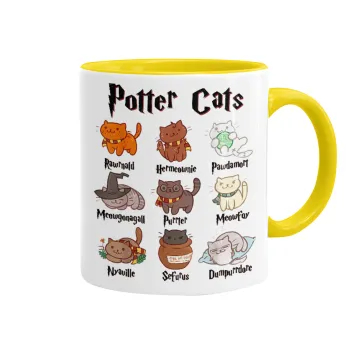 Potter Cats, Κούπα χρωματιστή κίτρινη, κεραμική, 330ml
