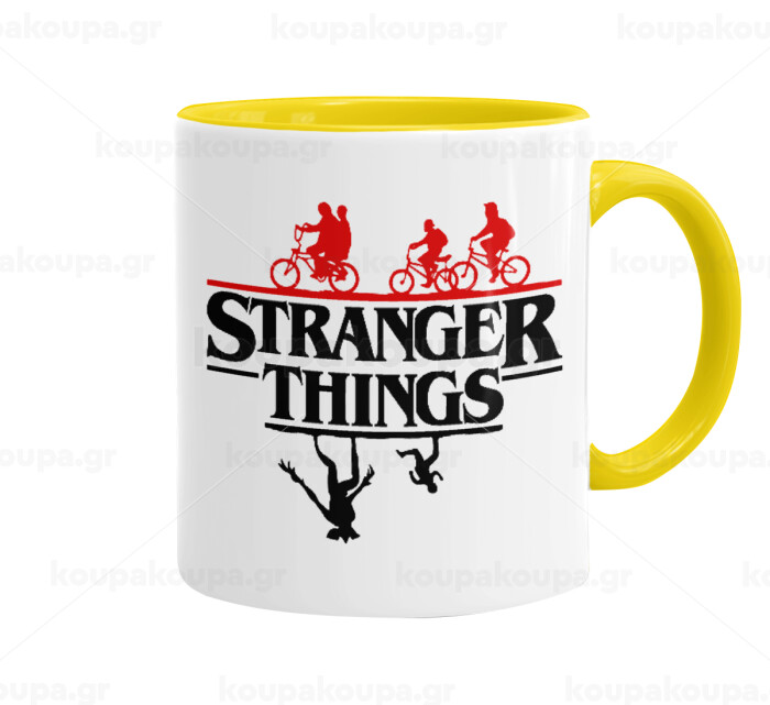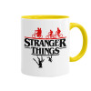 Stranger Things upside down, Κούπα χρωματιστή κίτρινη, κεραμική, 330ml