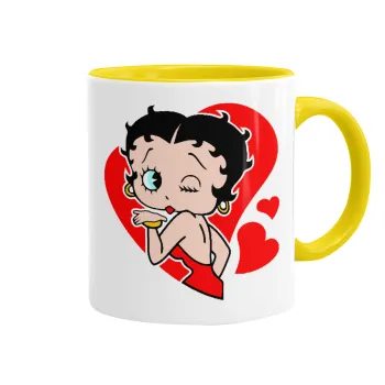 Betty Boop, Κούπα χρωματιστή κίτρινη, κεραμική, 330ml