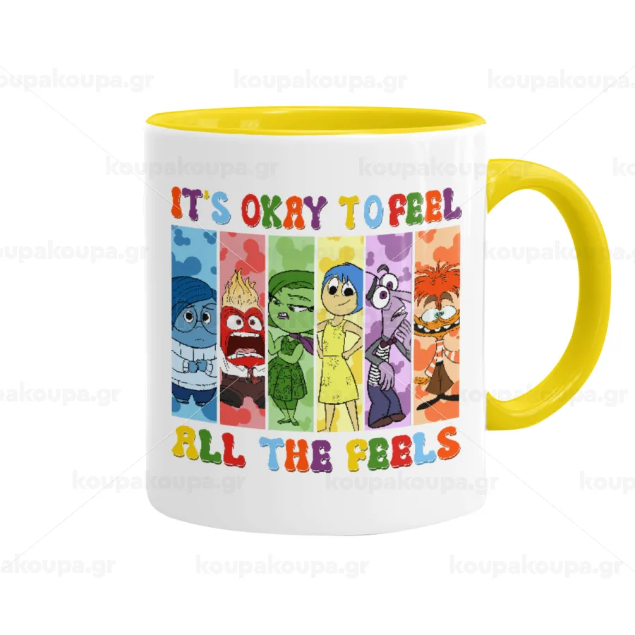 Inside Out It's Okay To Feel All The Feels , Κούπα χρωματιστή κίτρινη, κεραμική, 330ml