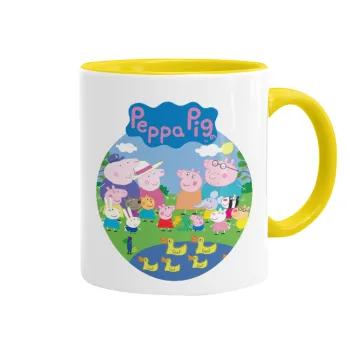 Peppa pig Family, Κούπα χρωματιστή κίτρινη, κεραμική, 330ml