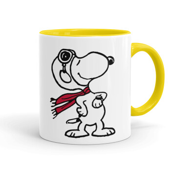 Snoopy ο πιλότος, Κούπα χρωματιστή κίτρινη, κεραμική, 330ml
