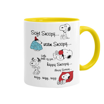 Snoopy manual, Κούπα χρωματιστή κίτρινη, κεραμική, 330ml