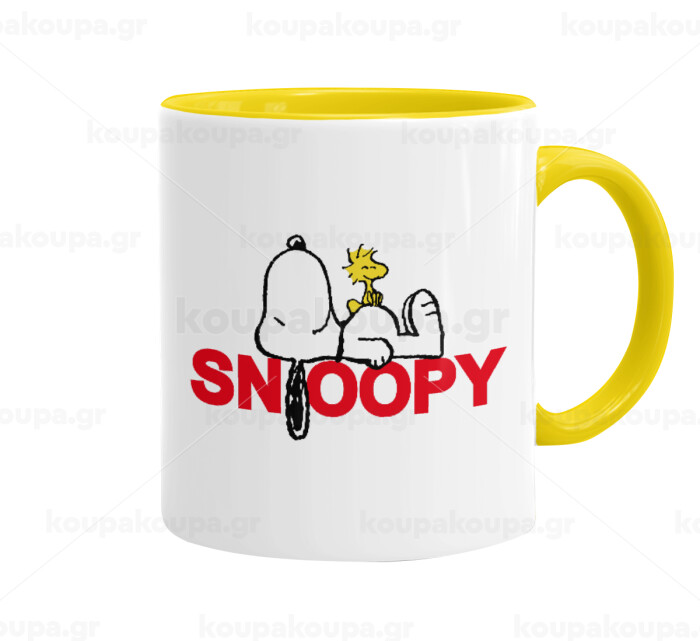 Snoopy sleep, Κούπα χρωματιστή κίτρινη, κεραμική, 330ml