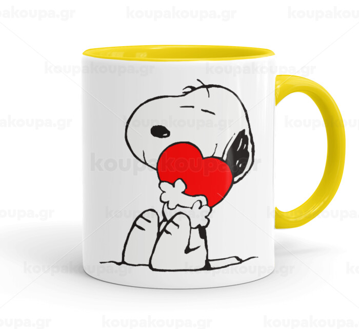Snoopy, Κούπα χρωματιστή κίτρινη, κεραμική, 330ml