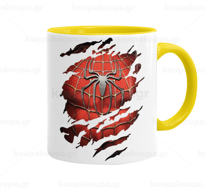 Spiderman cracked, Κούπα χρωματιστή κίτρινη, κεραμική, 330ml