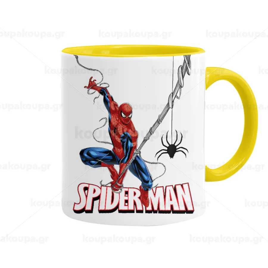 Spiderman fly, Κούπα χρωματιστή κίτρινη, κεραμική, 330ml