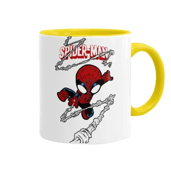Spiderman kid, Κούπα χρωματιστή κίτρινη, κεραμική, 330ml