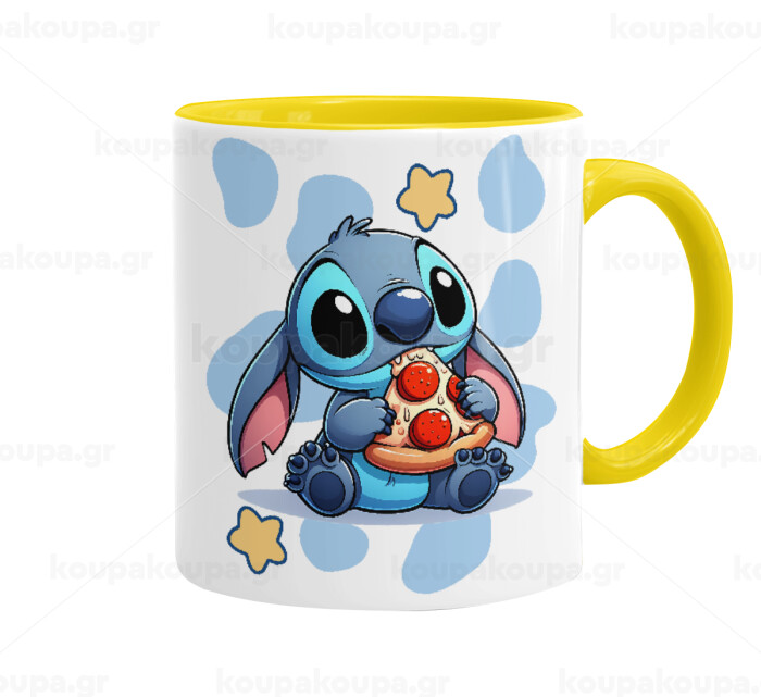 Stitch Pizza, Κούπα χρωματιστή κίτρινη, κεραμική, 330ml